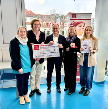 Blutspenden sind für die medizinische Versorgung unverzichtbar – in Notfällen, bei Operationen und insbesondere in der Behandlung schwerer Erkrankungen. Gleichzeitig sind kritische Engpässe in der Versorgung keine Seltenheit. Um die Blutspendebereitschaft weiter zu stärken, neue Spender:innen zu gewinnen und gleichzeitig krebskranke Kinder aus der Region zu unterstützen, hat das Institut für Transfusionsmedizin – Transfusionszentrale der Universitätsmedizin Mainz im Juni 2024 gemeinsam mit der Kinderkrebshilfe Mainz e.V. und der Klinik und Poliklinik für Kinder- und Jugendmedizin die Aktion „Blut tut Gut(es)“ ins Leben gerufen. Seitdem sind 27.878 Euro an Spenden zusammengekommen, die nun der Kinderkrebshilfe übergeben worden sind.